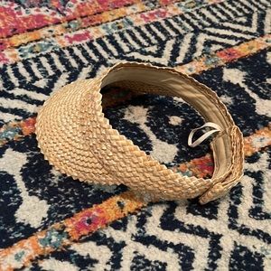 Brand new, never worn. Adjustable straw visor.
