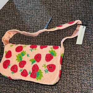 Sincerely Jules beaded bag, pink and red shoulder bag with strawberries! Super cute beaded bag. New with tags! Make an offer!