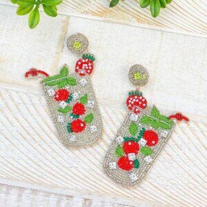 Brand NEW Adorable strawberry beaded tropical drink earrings