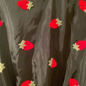 Lovely strawberry bomber jacket. I’m a medium and fits best on a small or x-small. Excellent condition. Final Price.