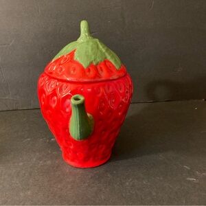 Add a touch of whimsy to your tea time with this charming strawberry-shaped ceramic teapot. Featuring vibrant red and green colors, it's perfect for any kitchen decor.