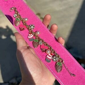 Strawberry Cupcake Gold Crystal Imitation Pearl Sweets Charm Bracelet
