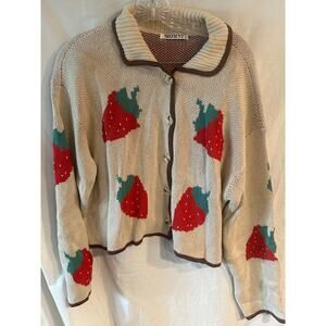 Momni Beige Strawberry Days Cardigan Women's Medium NWOT
