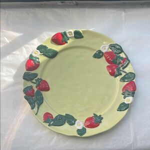 Add a touch of charm to your dining experience with this delightful ceramic plate featuring a vibrant strawberry design. Perfect for any occasion. This fan-favorite collection is crafted from handpainted glazed stoneware, beautifully embossed with a garden's worth of produce and blooms.