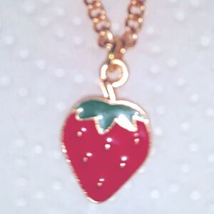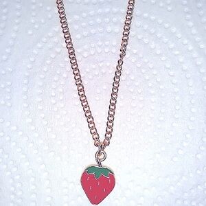 Strawberry Field Pendant Charm Necklace NEW Feminine Dainty Cute 18- 22" Gold Plated Chain with Lobster Clasp Strawberry Shortcake Strawberries Strawberry lovers Fruit Jewelry Trending Fashion Costume Ladies Womens Kids Jewelry Necklace Matching Strawberry Earrings Sold in Separate listing in this Shop.