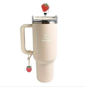 Charming strawberry-themed keychain and straw topper set. Perfect for adding a playful touch to your accessories.