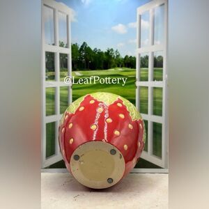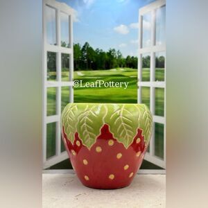 Strawberry (LG) Handcrafted Red/Green/Yellow Ceramic Planter Pot
