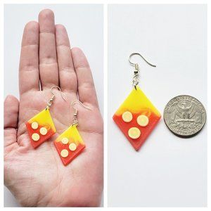 Handmade "Strawberry Lemonade" geometric diamond shape lemon slice dangle earrings. Made w/ ultra-lightweight resin for happy earlobes!
