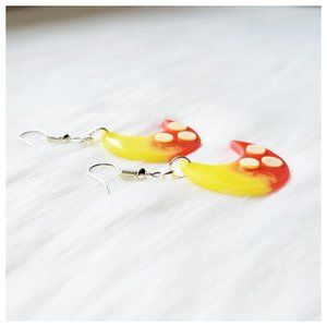 Strawberry Lemonade Earrings Yellow and Pinkish Red Moon Lemon Dangle Earrings