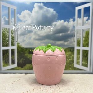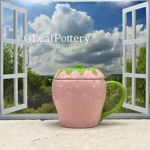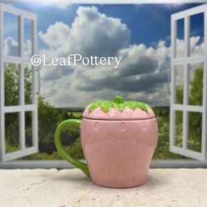 Strawberry Lidded Pink/Green Ceramic 16oz Mug