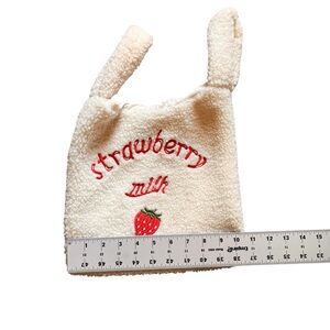 NWOT Embroidered Strawberry Milk Fuzzy plush Tote Bag. Lined with button close.