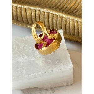 Stunning ring with strawberry quartz and gold plated. Its an adjustable ring so would fit many fingers. Excellent almost new condition.