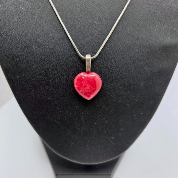 Strawberry Quartz Heart Pendant Necklace Sterling Silver
