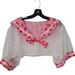 Top is sheer white with pink strawberry accents