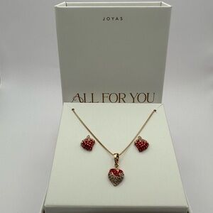 Elegant jewelry set featuring a stunning red heart design. Perfect for adding a touch of romance to any outfit.