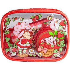 Strawberry Shortcake Cosmetic 3-Piece Zippered Bag Set Red Gingham NEW