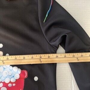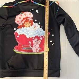 This Strawberry Shortcake sweatshirt features a solid black color with an all-over graphic print of the beloved character. The pullover sweatshirt has a crew neck and long sleeves, making it perfect for any casual occasion. The cotton blend material ensures comfort while wearing, and the logo accents add a touch of uniqueness. This sweatshirt is a must-have for any Strawberry Shortcake fan and is available in size medium.