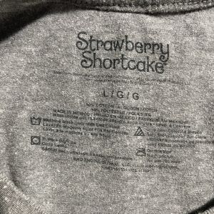 Strawberry Shortcake Kawaii Cat Graphic Shirt Gray Cartoon Tee Size Large Jrs