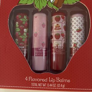 Strawberry Shortcake Lip Balm Set - 4 Piece Flavored Lip Balms - New In Box