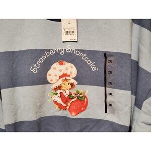New with tags. Strawberry Shortcake Womens Cropped Sweatshirt Blue Striped Size XXL. Armpit-to-armpit measurement is 28" across laying flat.