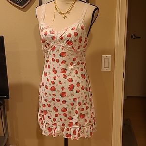 ❤️$♥️Strawberry Slip Dress Teddy Valentines Lace Trim sz M or L