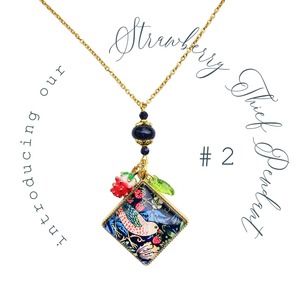 Our "Strawberry Thief" pendant #2 is the perfect way to showcase your love for William Morris's iconic design, featuring the captivating bird that steals hearts and strawberries alike.