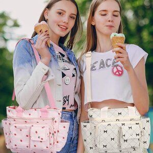 Strawberry Tote Bag Bow Bag With Multi Pocket Women Girls Crossbody Corduroy Han