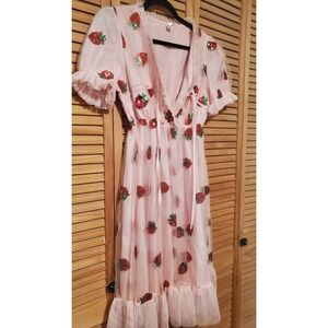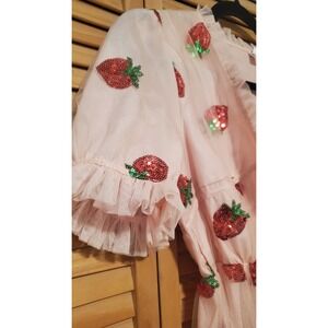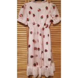Strawberry Tulle Dress Womens Medium Pink Sequin Mesh Puff Sleeve Pastel