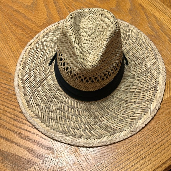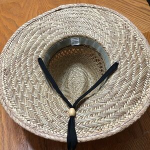 Strawhat w/ black band . &!wood bead for chin strap.