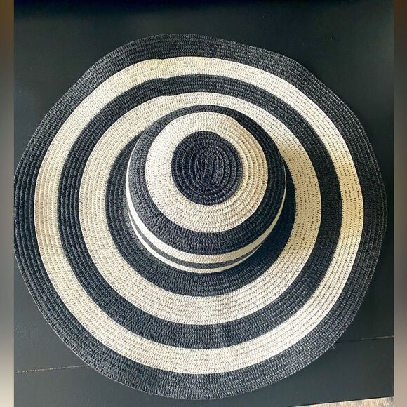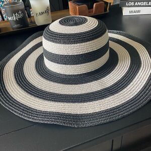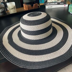 Cute black and white striped straw hat one size in great condition.