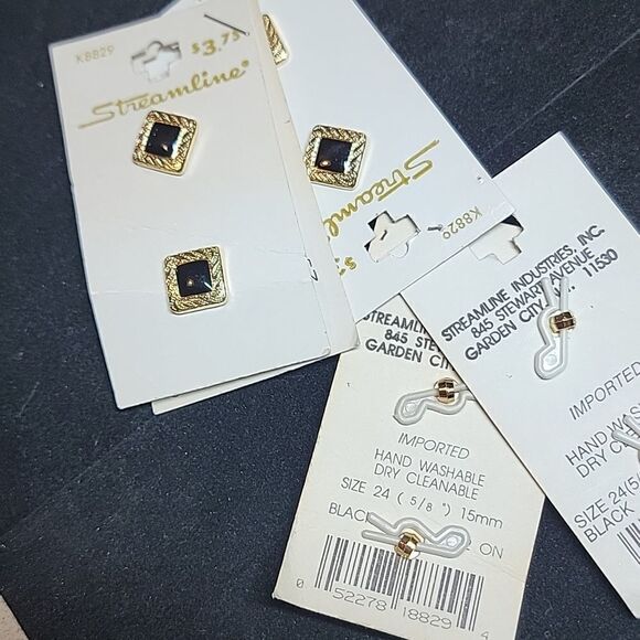 Streamline Vintage Black Gold Metal Buttons Card 5 sets of 2