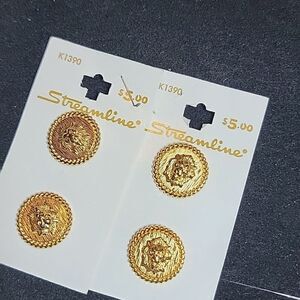 Streamline Vintage Shiny Gold Metal Lion Heads Button #K1390