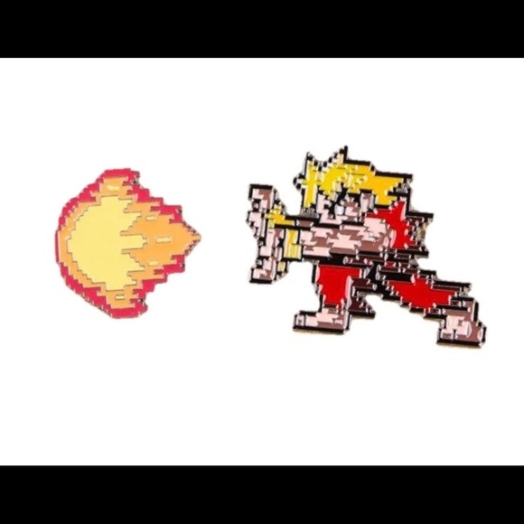 Add a touch of nostalgia to your space with this retro gaming pixel art magnet set. Featuring vibrant red and yellow colors, it's perfect for fans of classic video games.