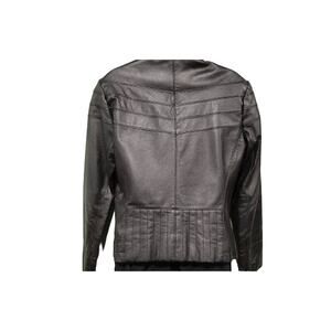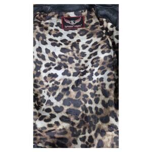 I love this little black leather jacket with the stand up collar, leopard print lining and decorative seams and zippers. I think it's the perfect leather jacket. Too bad, I've outgrown it. I think I only wore it one time, so it's in like new condition.
