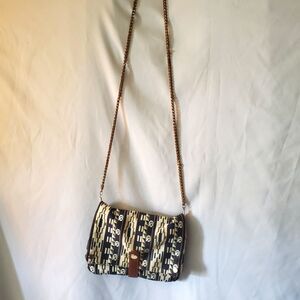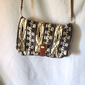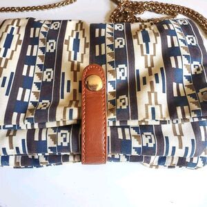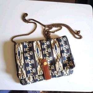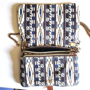 Street Level Clutch Crossbody Handbag W/ Chain, Blue Aztec Boho... Approx 8" x 5"... Such a fun style, the chain can also be removed... Several pockets and soft material... The chain has a couple kinks in it.