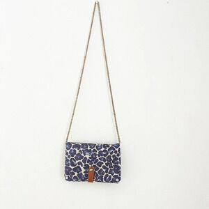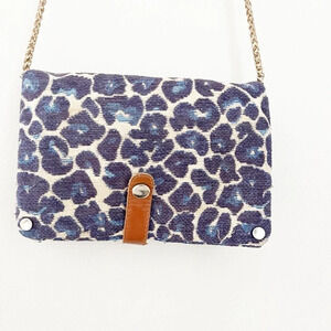Street Level Milan Crossbody Bag Leopard Flap Clutch Women's Blue Chain Strap