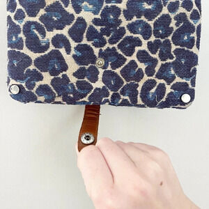 Beautiful textile leopard print, fold over flap crossbody, double zipper interior pockets. Great to pair with a bright dress and sleek jacket.