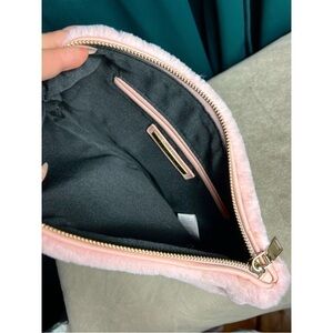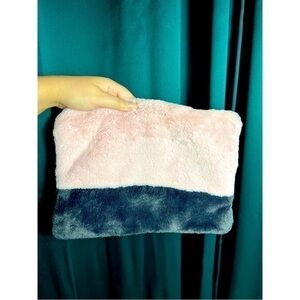 Street Level Pink Colorblock Soft Faux Fur Zip Closure Medium Clutch 9" x 12"