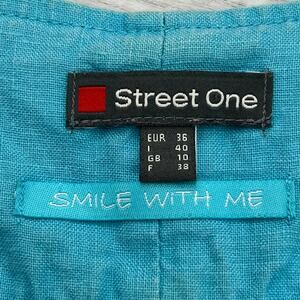 Street One Blue Linen Sleeveless Lined Fit Flare Pockets Knee Length Summer Dress