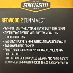 Featuring a classic redwood design and made from durable materials, this vest is built to last. It's perfect for those who want to add a touch of style to their outfit without sacrificing comfort or quality. So why wait? Add this Street & Steel Redwood 2 Vest to your wardrobe today and take your style to the next level!