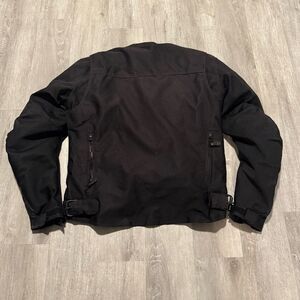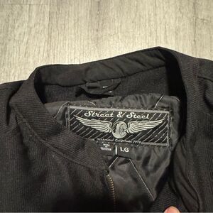 Street and Steel Armored Padded Motorcycle Jacket Size Large Black Zip Pockets good condition all zippers work. Pads on the shoulders, elbows and back.