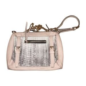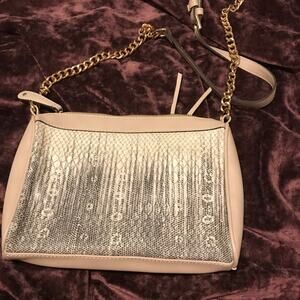 Street level taupe and snakeskin crossbody with gold link straps W 2.5 x H 7.5 x L 9.5