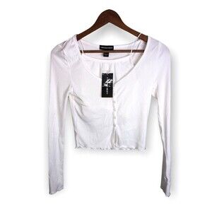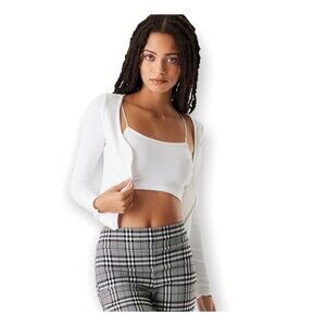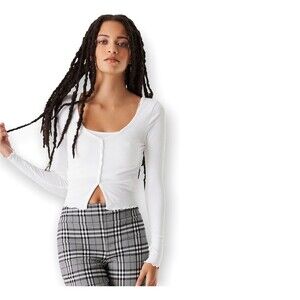 Twinning is winning! Get your look sorted with a matching cami and cardi set. This twin set features a soft ribbed cami with bungee straps and a soft button-up cardigan with lettuce trimming. Size Runs Small.