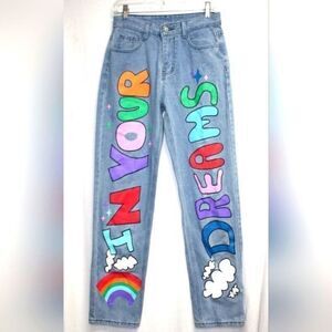 "In Your Dreams" Painted Rainbow Jeans Size M (26" waist)