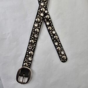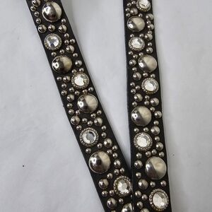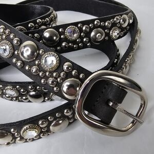 Streets Ahead Double Length Stud & Rhinestone Embellished Black Skinny Belt