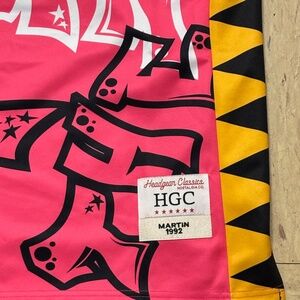 Super rare and bold basketball jersey with a street art / graffiti design in bright pink, yellow & black.