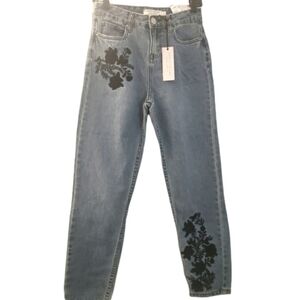 Streetwear Society Embroidered Jogger Mom High Rise Jeans, Size 1