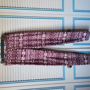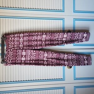 These stylish leggings from Streetwear Society feature a cozy Fair Isle pattern with "LOVE" detailing in maroon and white tones. Perfect for lounging or casual outings, they offer comfort and a trendy vibe.
