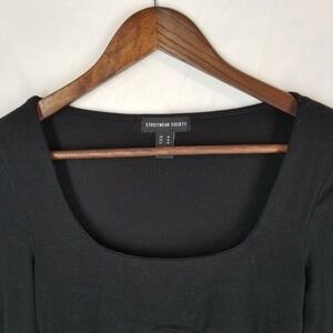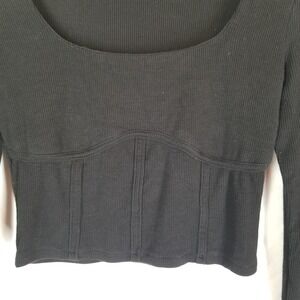 Chic and versatile, this Streetwear Society women's crop top in size medium is perfect for layering or styling on its own. Designed with a flattering square neckline, fitted ribbed knit fabric, and a slightly structured waistline, this top creates a sleek, modern silhouette. Long sleeves make it great for year-round wear, whether paired with jeans, skirts, or layered under jackets.