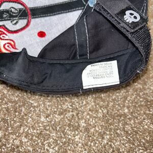 Streetwear skull flames hat cap black embroidered skull Halloween biker adjust